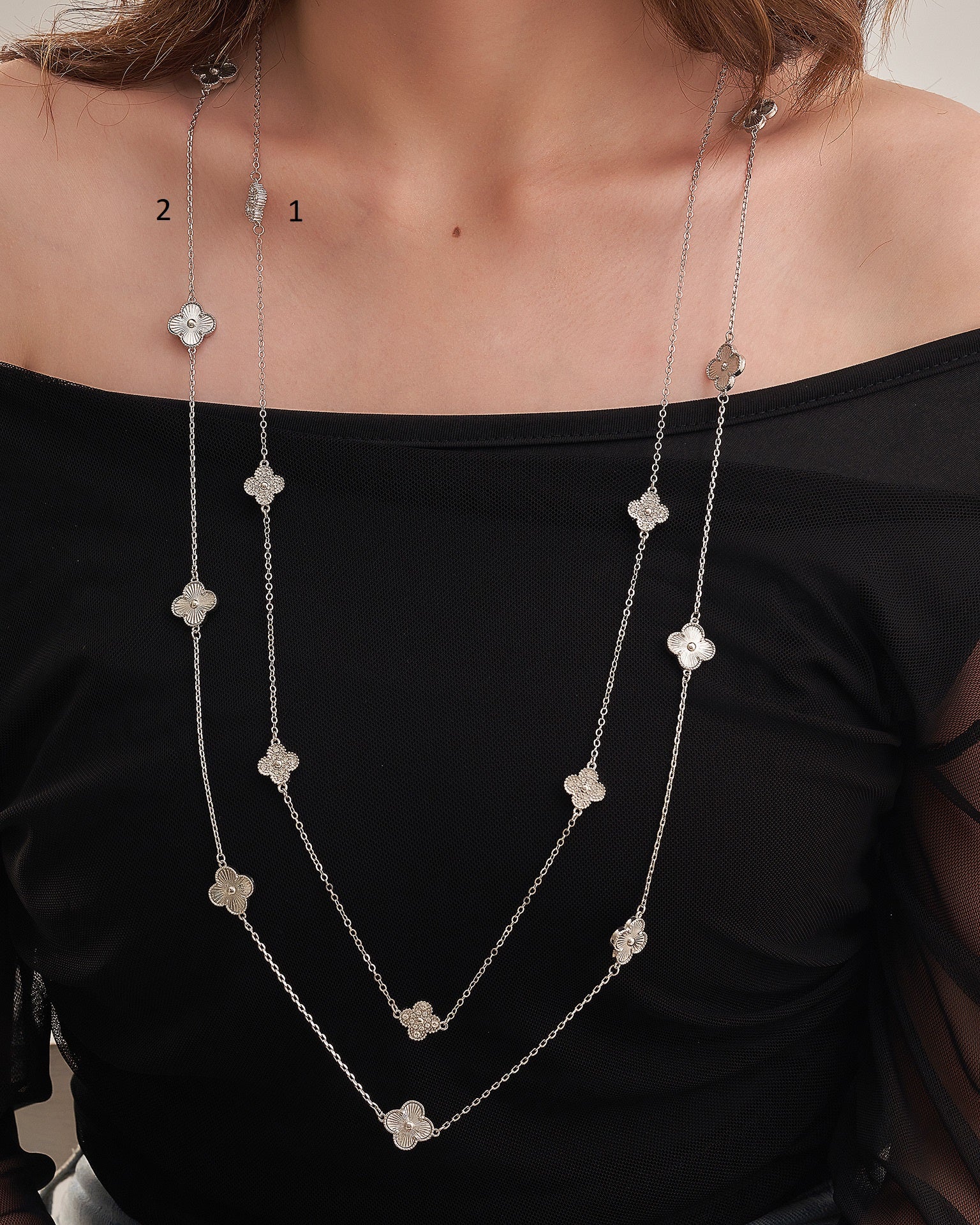 Long Van-cleef Necklace (silver tone )